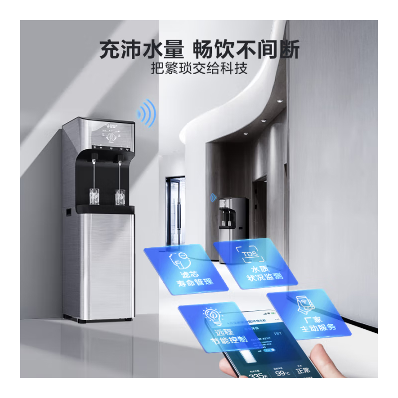 A.O.史密斯BZR100-A2111商用净水器采用高精度反渗透过滤系统,有效滤除重金属,双温双控、支持大热水模式,满足多人同时取水需求。