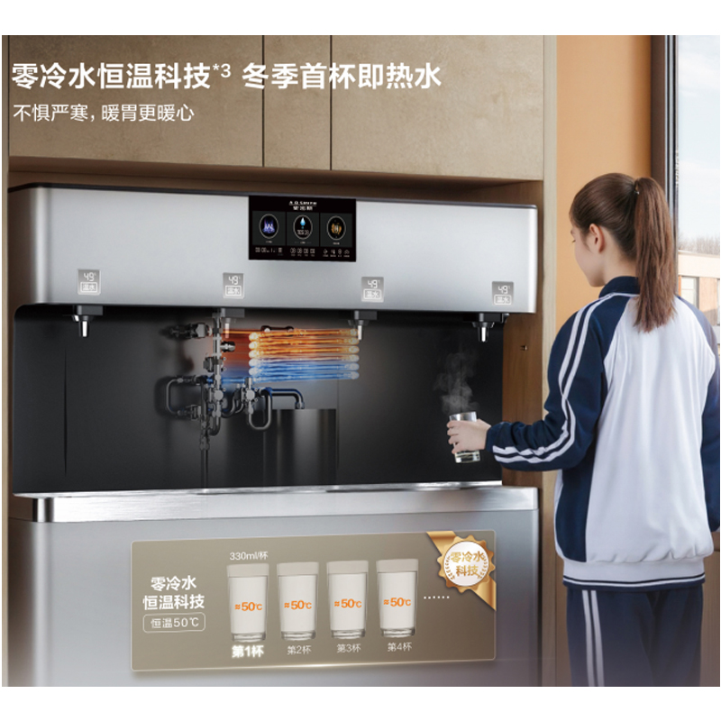 A.O.史密斯BZR100-A2111商用净水器采用高精度反渗透过滤系统,有效滤除重金属,双温双控、支持大热水模式,满足多人同时取水需求。