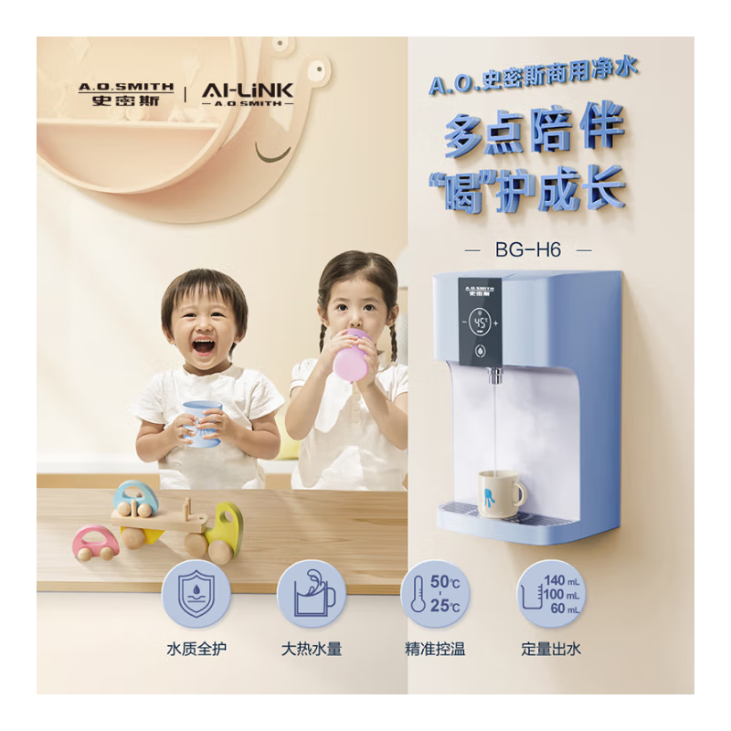 A.O.史密斯BZR600-S6商用净水器,幼儿园校园专供直饮水机,全天候安全守护宝宝饮水安全,A.O.史密斯幼教场景一体式饮水解决方案。