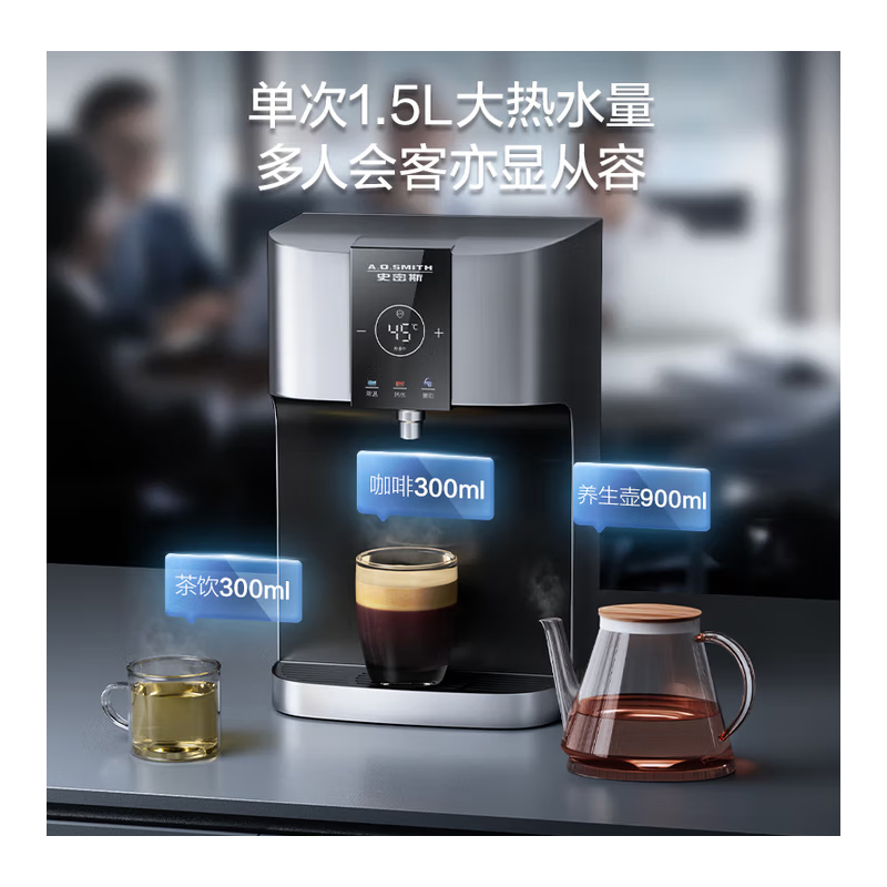 A.O.史密斯BZR100-A2111商用净水器采用高精度反渗透过滤系统,有效滤除重金属,双温双控、支持大热水模式,满足多人同时取水需求。